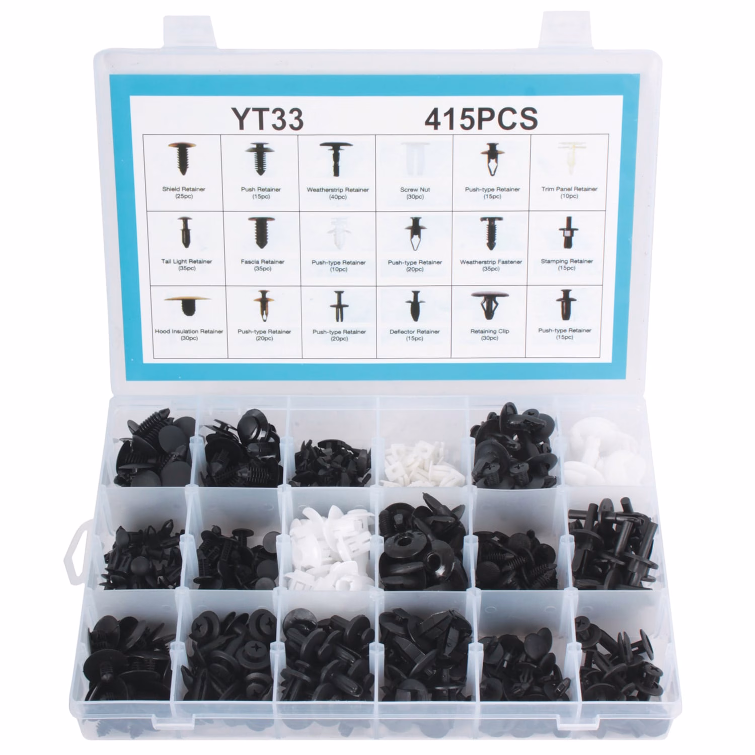 Upgrade your tool collection with this essential 415-piece panel clips set today and enjoy the convenience it brings to your automotive repairs.