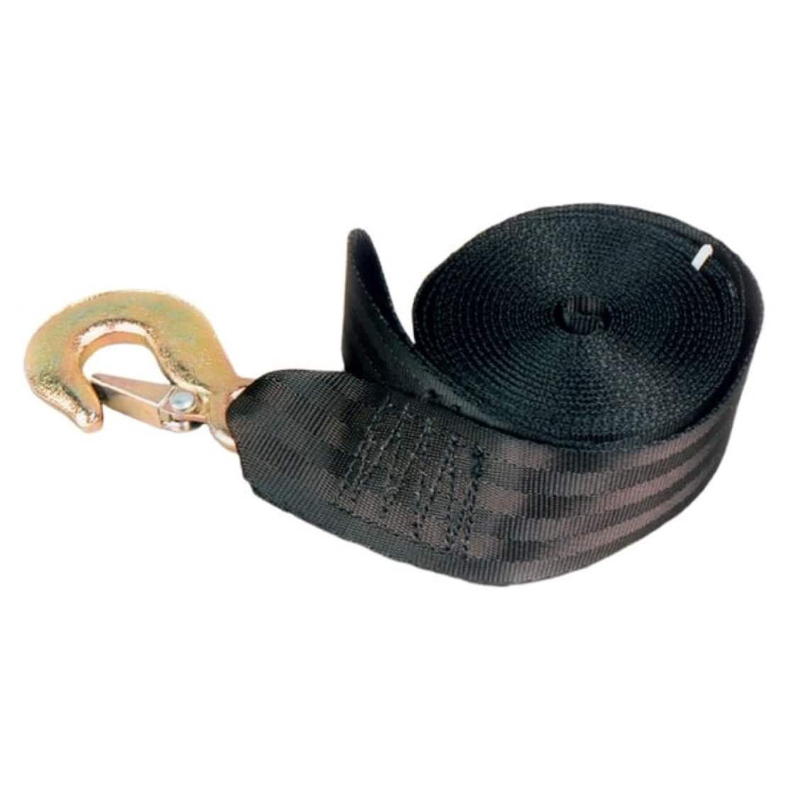 Belt type winch strap with self latching eye hook – 6 meters long