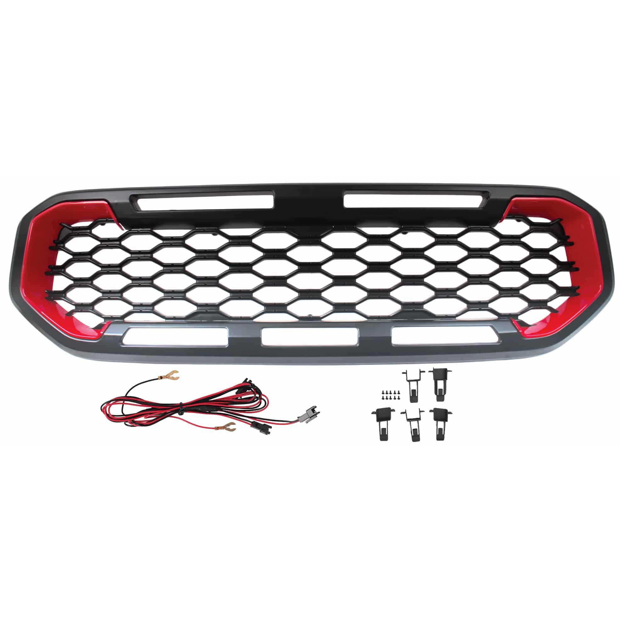 Black and Red Aftermarket LED Light Up Grille – Compatible with Ford Ranger T8