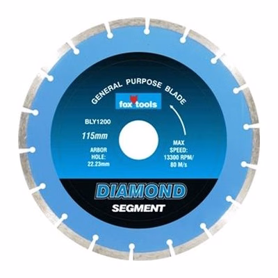 The Fox Diamond Disc Segmented Masonry Cutting Blade – 115mm is designed to deliver powerful, precise performance for a wide range of cutting tasks. With its segmented design and advanced diamond cutting technology, this blade is perfect for handling tough materials such as most types of concrete, general masonry products, stock paving bricks, some granites, roofing tiles, and hard sandstones. Engineered for efficiency, durability, and accuracy, this blade is an excellent choice for both professionals and DIY enthusiasts undertaking construction, renovation, or landscaping projects.