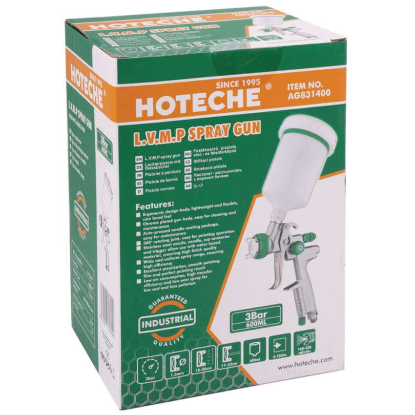 Durable and User-Friendly Design: Crafted from high-quality materials, the Hoteche LVMP Spray Gun is designed for durability and ease of use. Its ergonomic design ensures comfortable handling, even during extended use, and the durable construction guarantees a long service life, making it a valuable tool for both professionals and home painters alike.