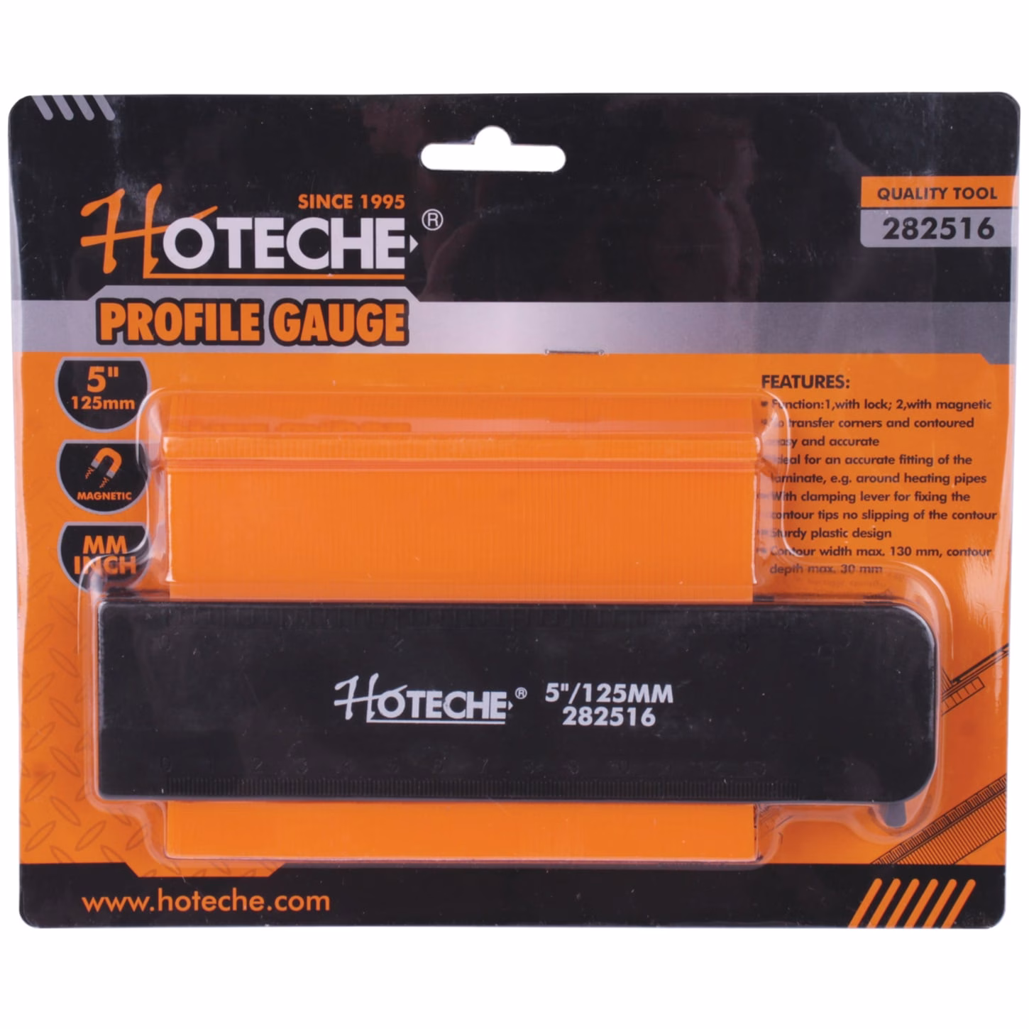 The Hoteche Profile Gauge -125mm combines durability, convenience, and accuracy in a compact and portable tool designed for precision work. Its user-friendly operation and finely engineered measuring pins ensure effortless duplication of complex shapes, making it invaluable across woodworking, tiling, flooring, and metalworking projects. With its practical size, lightweight construction, and reliable performance, this profile gauge delivers the efficiency and accuracy demanded by professionals while remaining accessible and easy to use for DIY enthusiasts. It is an essential measuring solution for anyone working with irregular surfaces.