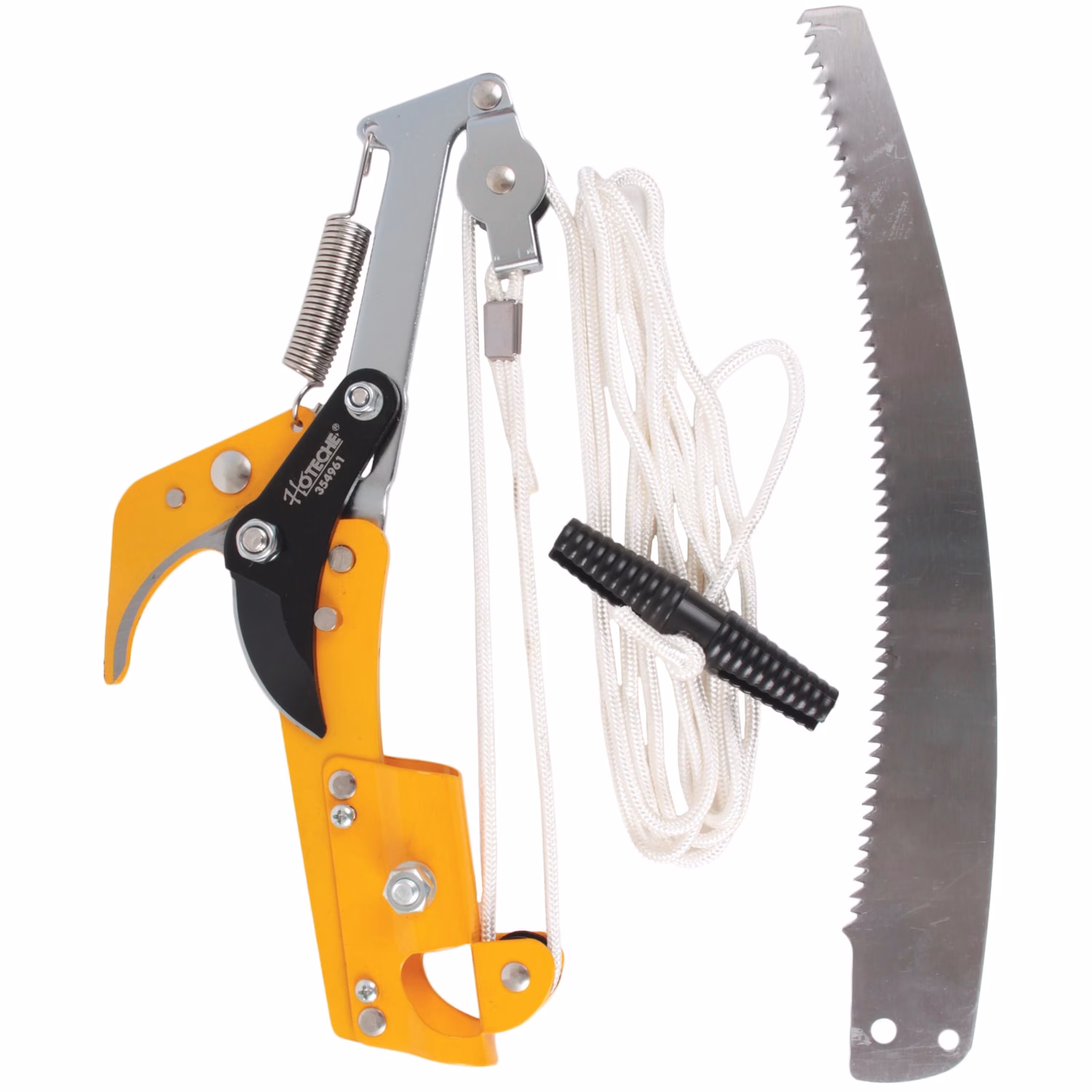 Take your tree-trimming tasks to the next level with the Hoteche Telescopic Tree Pruner, designed for precision, durability, and ease of use. This professional-grade pruner features a high-carbon steel blade with a TEFLON coating, ensuring sharp, long-lasting performance while reducing friction for smoother cutting. With an extendable telescopic pole ranging from 1.2 to 2.3 metres, you can effortlessly reach high branches without needing a ladder. The single roller bearing system with a sturdy nylon rope provides excellent control, making trimming and pruning safer and more efficient.