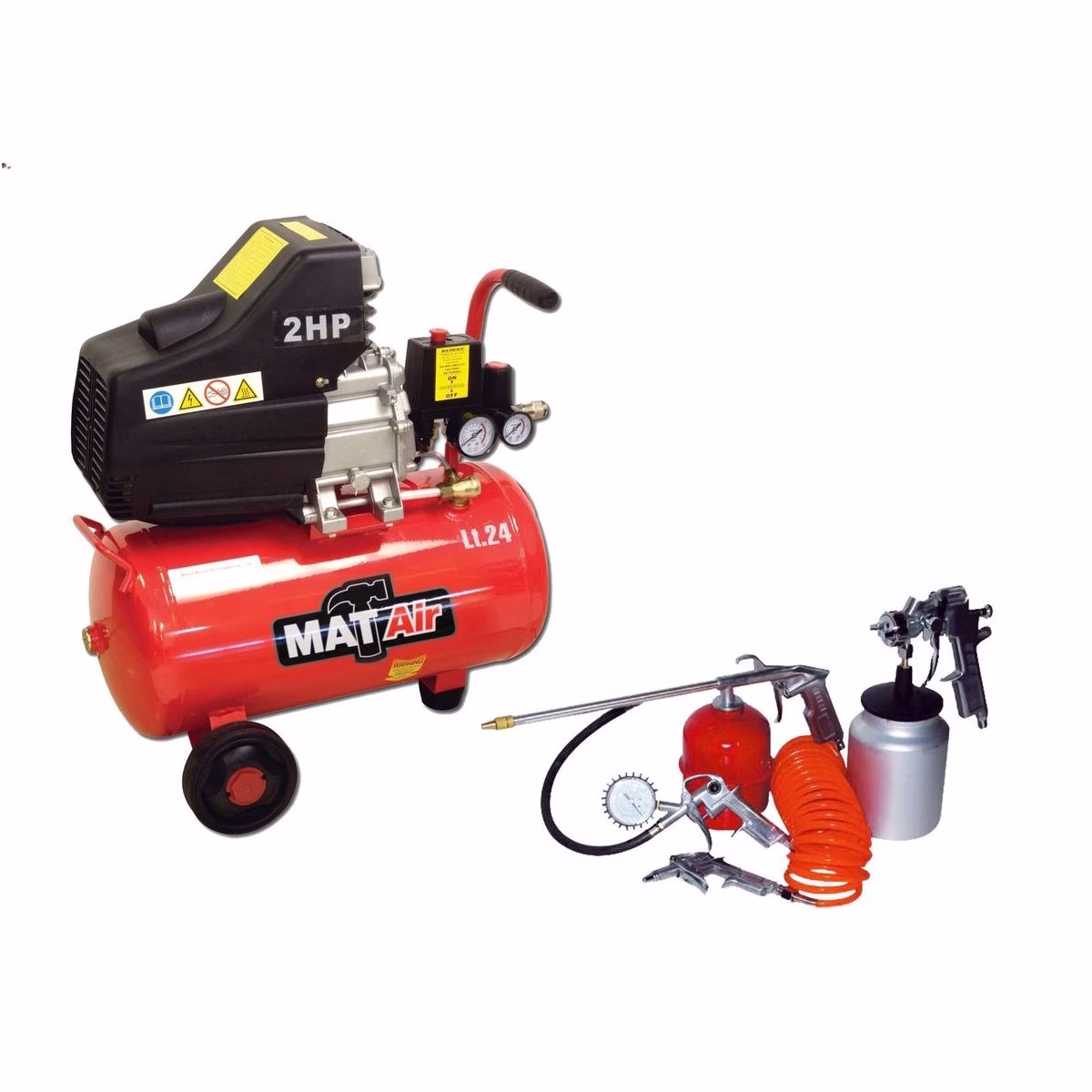 The Matair 24 Litre Single Stage Hobby Compressor with 5-Piece Spray Gun Kit is a reliable, durable, and versatile solution for DIY enthusiasts and light commercial users. With its robust design, user-friendly features, and complete accessory kit, this compressor offers outstanding performance for a variety of tasks. Whether you’re spray painting, inflating tyres, or powering pneumatic tools, this system provides everything you need to get the job done efficiently and effectively.