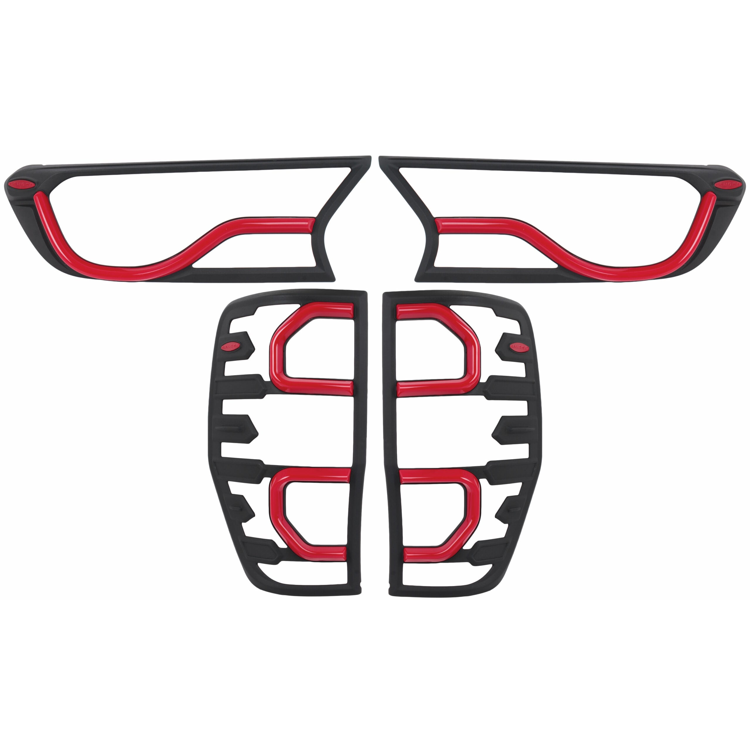 Red edged tail lamp and head lamp cover set for Ford Ranger 2015 and newer