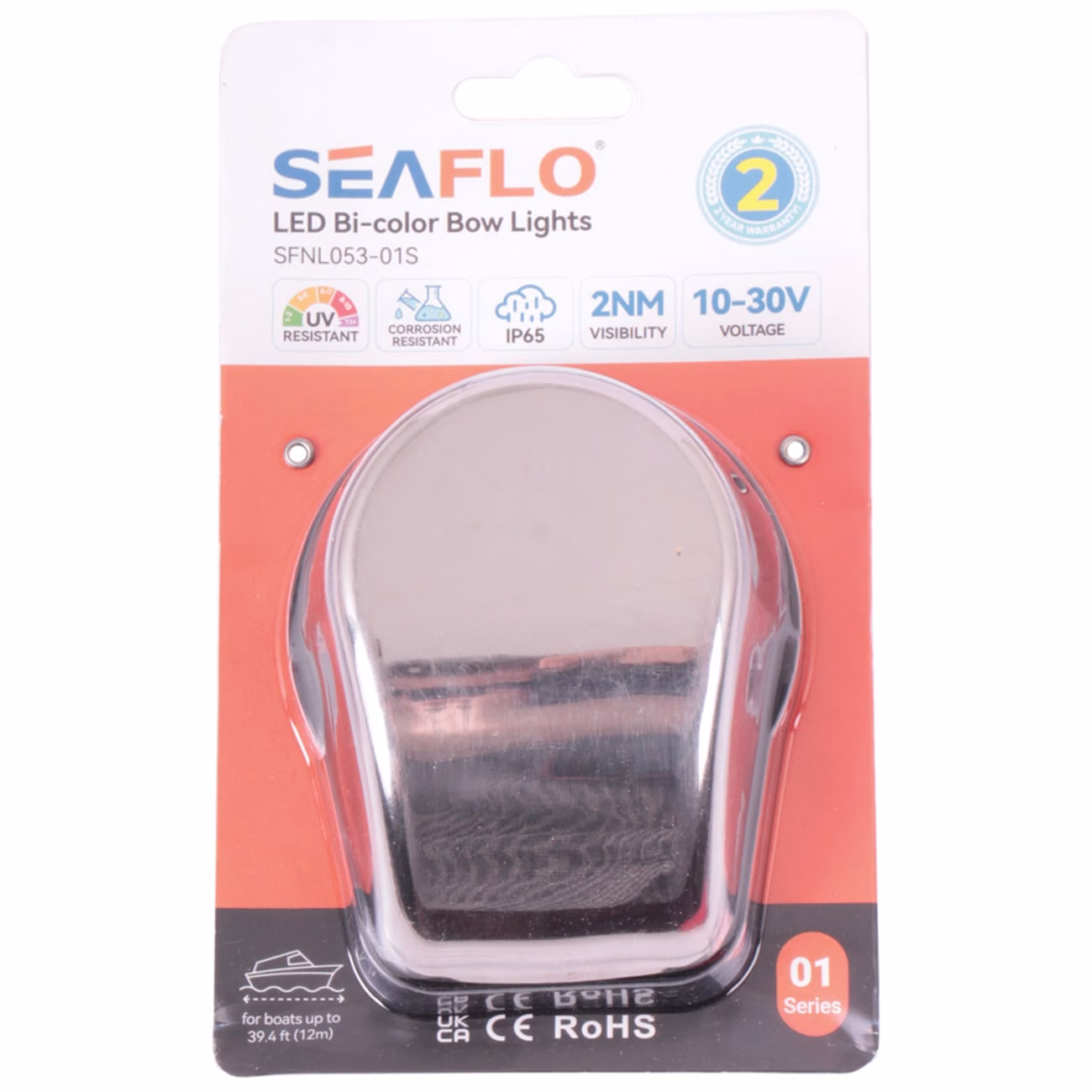 The Seaflo Bi-Colour Horizontal Navigation Lamp for Boats is a premium marine lighting solution designed to deliver reliable visibility and regulatory compliance during night-time and low-visibility navigation. Built with a durable 316 stainless steel housing, this lamp is engineered to withstand harsh marine environments where corrosion, moisture, and salt exposure are constant concerns. Its bi-colour horizontal design combines both port and starboard lighting into a single unit, simplifying installation while maintaining clear directional signalling for other vessels. Operating across a wide 10–30 volt range, this navigation lamp is suitable for a broad variety of boats and electrical systems. With a visibility range of up to 2 nautical miles, it ensures your vessel remains clearly visible on the water. The IP65-rated construction provides dependable protection against water jets and dust ingress. Designed for longevity, efficiency, and safety, this lamp is an ideal choice for dependable marine navigation lighting.