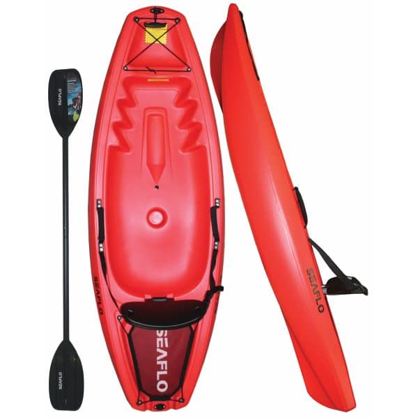Seaflo red 55 kilogram capacity sit on top kayak with oars