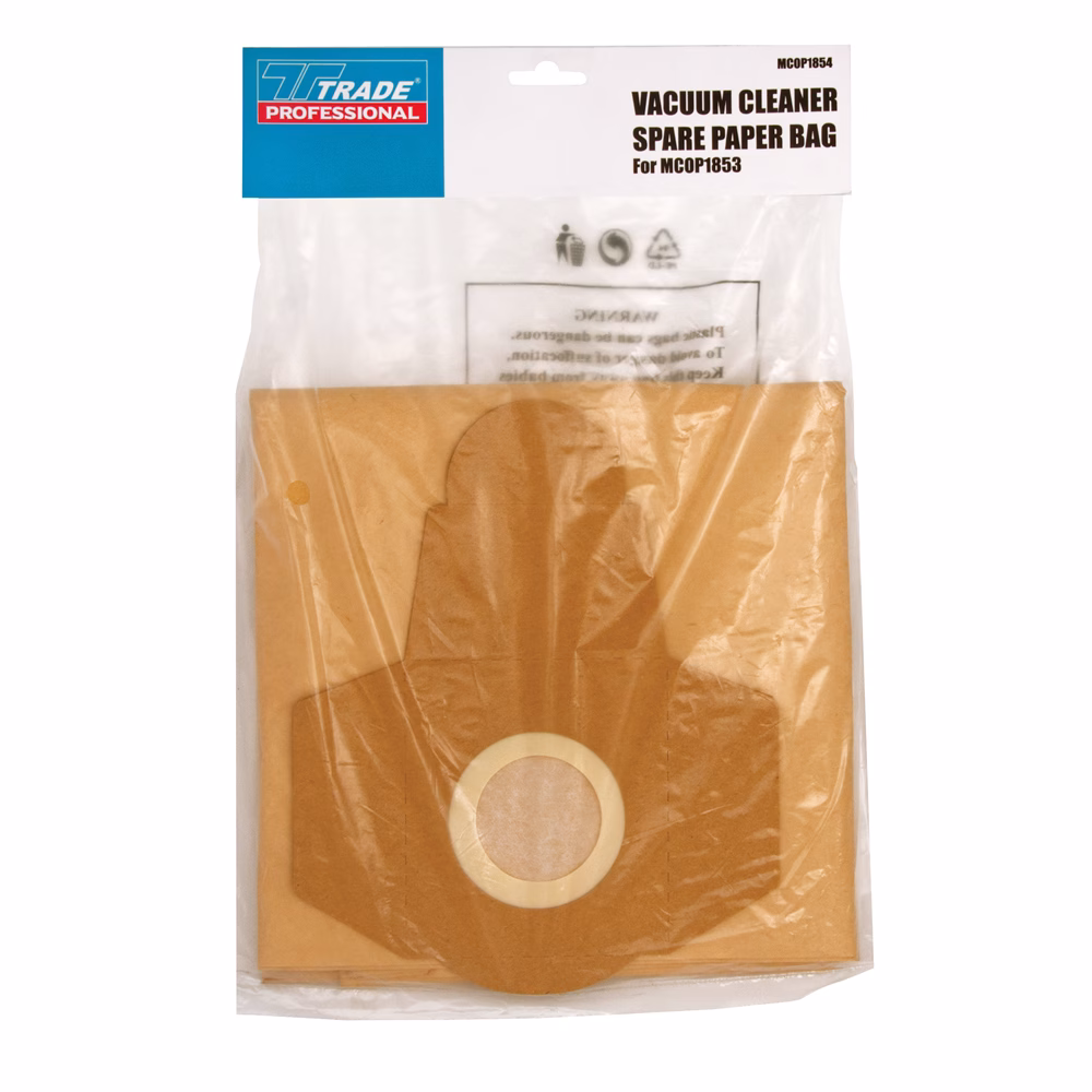 • Extends vacuum cleaner lifespan by protecting the motor: Dust entering the motor can cause wear and performance loss over time, but this spare paper bag helps prevent such damage by capturing dirt at the source. By acting as a barrier, it reduces internal build-up and keeps suction power strong, lowering the likelihood of costly repairs. This added protection ensures that your Trade Professional vacuum remains efficient for years of reliable use.