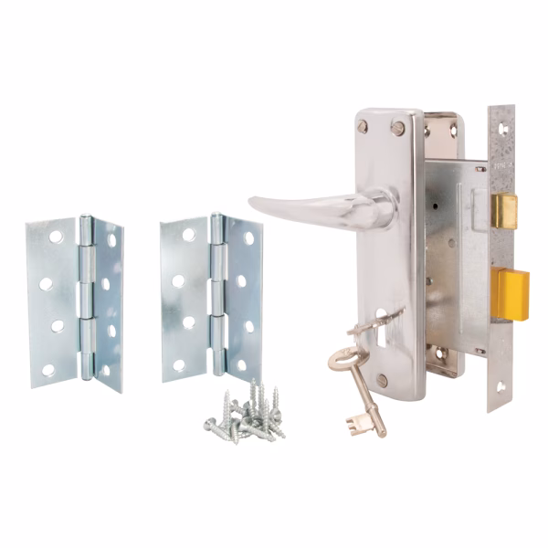 The Trojan Hardware 2-Lever Mortice Lockset – 6 Inch (Chrome Plated) with Zinc Plated Hinges is a complete door hardware solution designed for smooth operation, basic internal security, and long-term durability. Ideal for residential interior doors such as bedrooms, storerooms, or utility rooms, this 2-lever lockset combines reliable functionality with a clean chrome-plated aesthetic. The included zinc-plated hinges add convenience and rust resistance, making the set suitable for use in both dry and mildly humid interior environments. This all-in-one hardware package offers a hassle-free installation process and a sleek, uniform look across your door fittings.